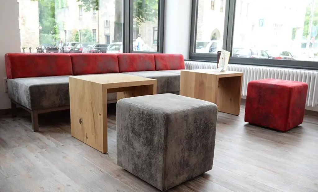 Einfach hinsetzen und sich wohlfühlen! Der Kaltschaum der Vollpolsterbank Fredi schmiegt sich beim Sitzen angenehm an den Körper an und lädt Ihre Gäste zum längeren Verbleiben an. Wie bei all unseren Produktreihen sichert Ihnen die Schnieder Stuhlfabrik eine Herstellung nach individuellen Vorgaben zu. Hierzu gehört unter anderem die Integration einer Rückwandverkleidung, mit der Sie die Vollpolsterbank Fredi als Raumteiler nutzen können und eine größere Stellfläche in mehrere Sitzgruppen einteilen können.