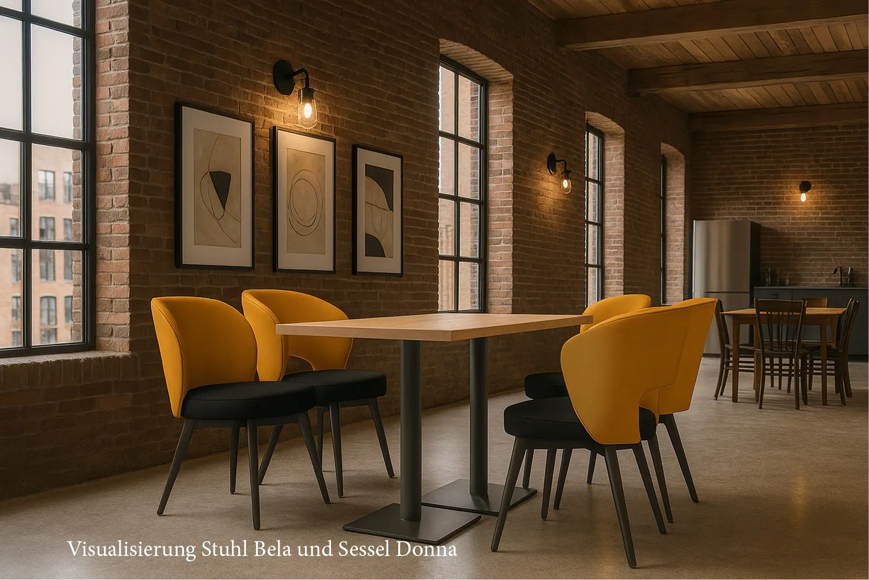 Mit dem Polsterstuhl Bela investieren Sie in eine stilvolle und langlebige Sitzlösung, die Ihren Gästen und Mitarbeitern höchsten Komfort bietet.