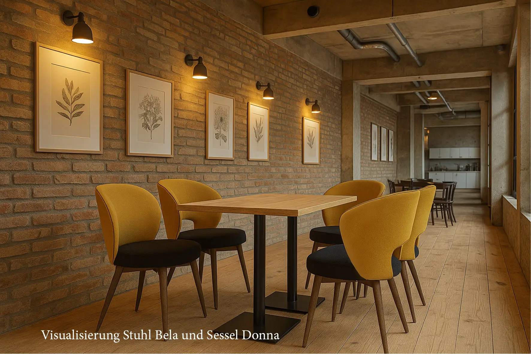 Der Polsterstuhl Bela, entworfen von Designer Detlef Fischer, ist eine erstklassige Wahl für die Gastronomie- und Objekteinrichtung. Mit seinen großzügigen Sitzmaßen und der komfortablen Polsterung bietet er ein unvergleichliches Sitzerlebnis für Ihre Gäste.