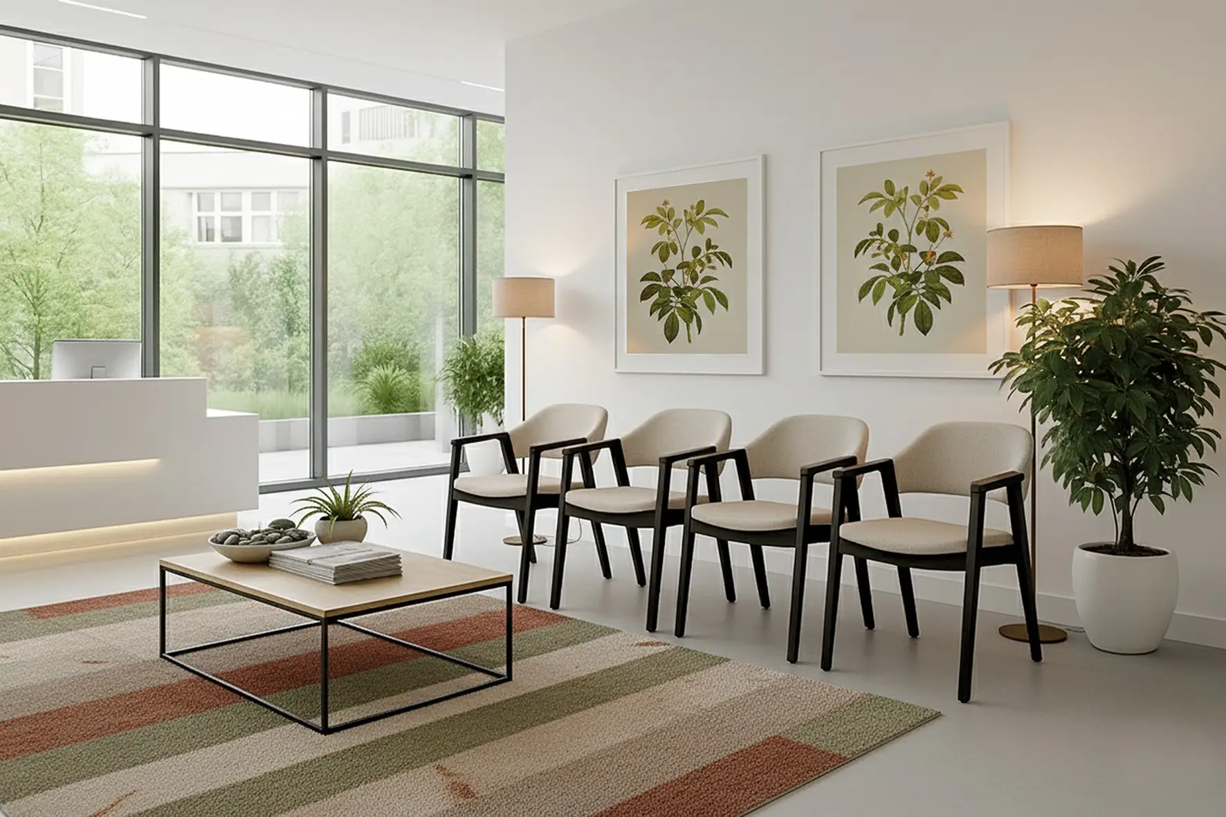- Massive Langlebigkeit: Das Gestell aus massiver Buche sorgt für die notwendige Stabilität im anspruchsvollen Objektalltag – von der Arztpraxis bis zur Hotel-Lobby.