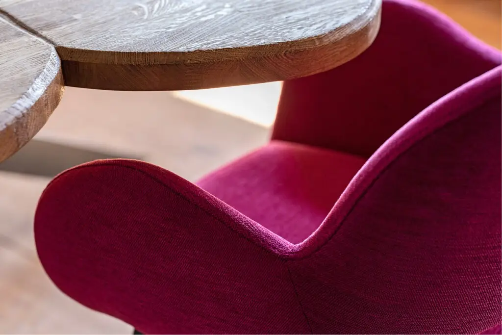 Leicht augenzwinkernd spielt der Sessel Juna ein wenig mit dem Charme der 50er Jahre. In denen der klassische Cocktailsessel zum Inbegriff selbstbestimmten Nichtstuns wurde. Entspannen und ein Toast auf das wunderbare Wirtschaftswunderleben. Der Polsterstuhl Juna holt dieses fröhliche Flair ins Hier und Jetzt. Mit seiner behaglichen Vollpolsterung und einem Sitzkomfort, der ebenso austariert ist, wie die Funktionalität der Armlehne: Die Sitztiefe ist so bemessen, dass sowohl zurückgelehntes Relaxen als auch ein aufrechter Sitz – beispielsweise beim Essen – als angenehm empfunden wird.