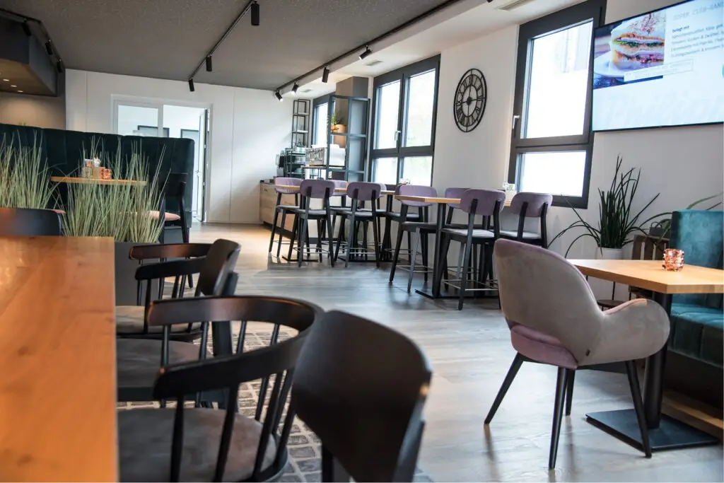 Die Sitzhöhe von Sessel Juna entspricht dieser beabsichtigten Multifunktionalität als purer Lounge-Sessel für Bars oder andere öffentliche Bereiche. Als Funktionssitzmöbel für die Gastronomie. Der Polstersitz kann wahlweise mit einem Vollholzgestell aus massiver Buche oder massiver Eiche kombiniert werden. Was der Sessel Juna eine nuancierte Ausstrahlung in Richtung freundlich-leger oder dezent-zurückhaltend verleiht. Die Kombination aus weich-runder Polsterung und betont geradliniger Gestell-Gestaltung vermag dabei per se sowohl eine eher minimalistische Gesamteinrichtung als auch ein bevorzugt gemütliches Ambiente zu akzentuieren. Der Sessel Juna überzeugt als kleine gemütliche Gruppe für Nischenbereiche, macht aber auch in Reih und Glied an langen Tischen seine prächtige Aufwartung.