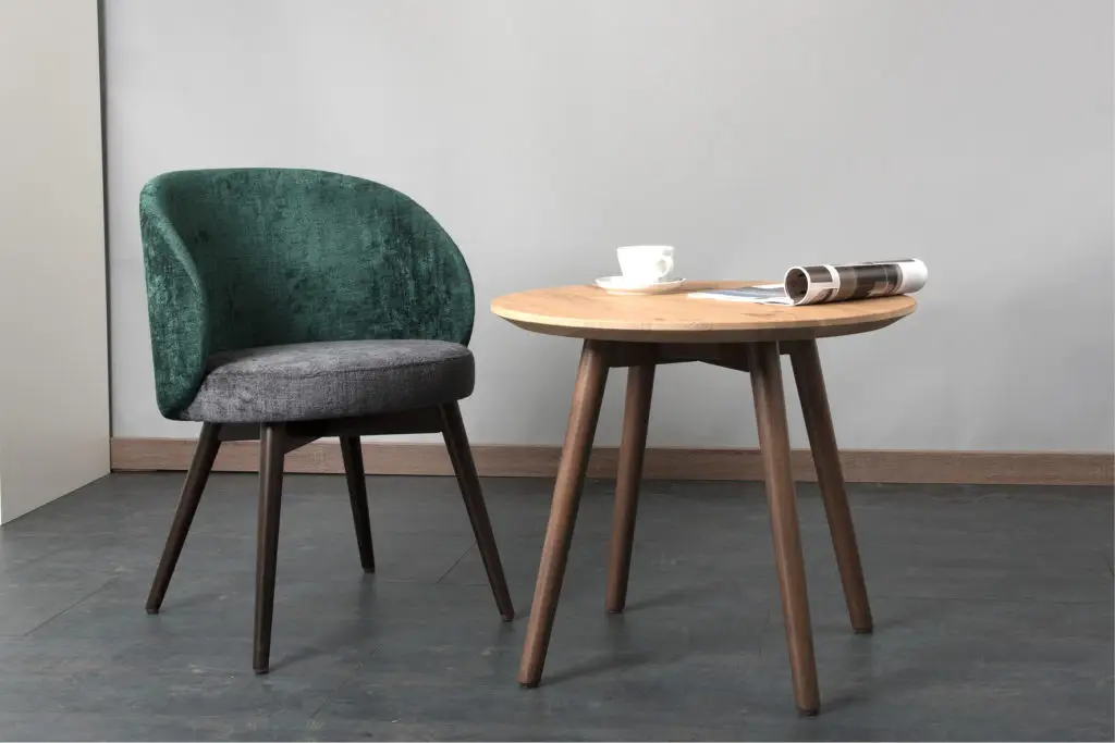 Die Stollen sind aus Buche- oder Eiche-Massivholz gefertigt und laufen konisch zu. Bequemlichkeit ohne zu weich zu sitzen, ist ein wichtiges Merkmal beim Polsterstuhl Maria.