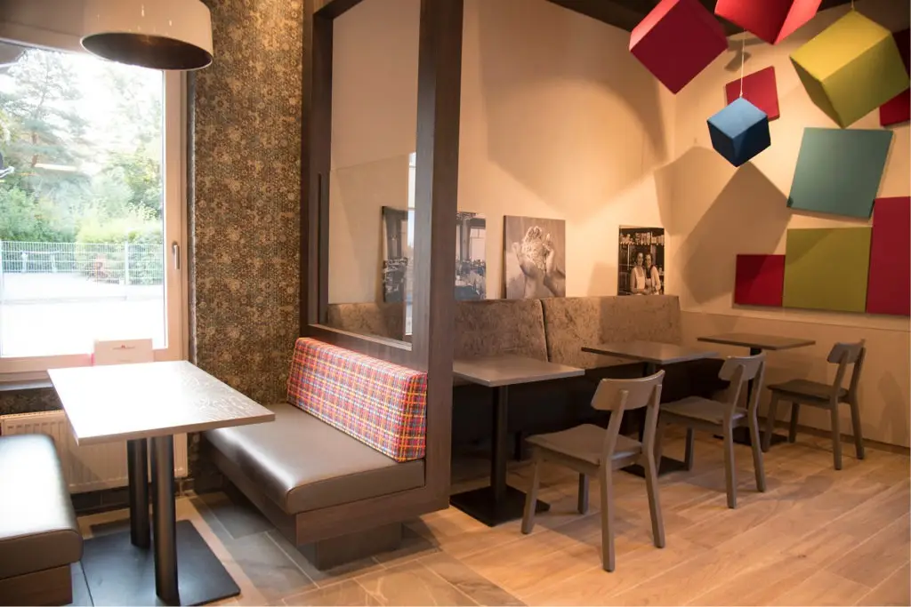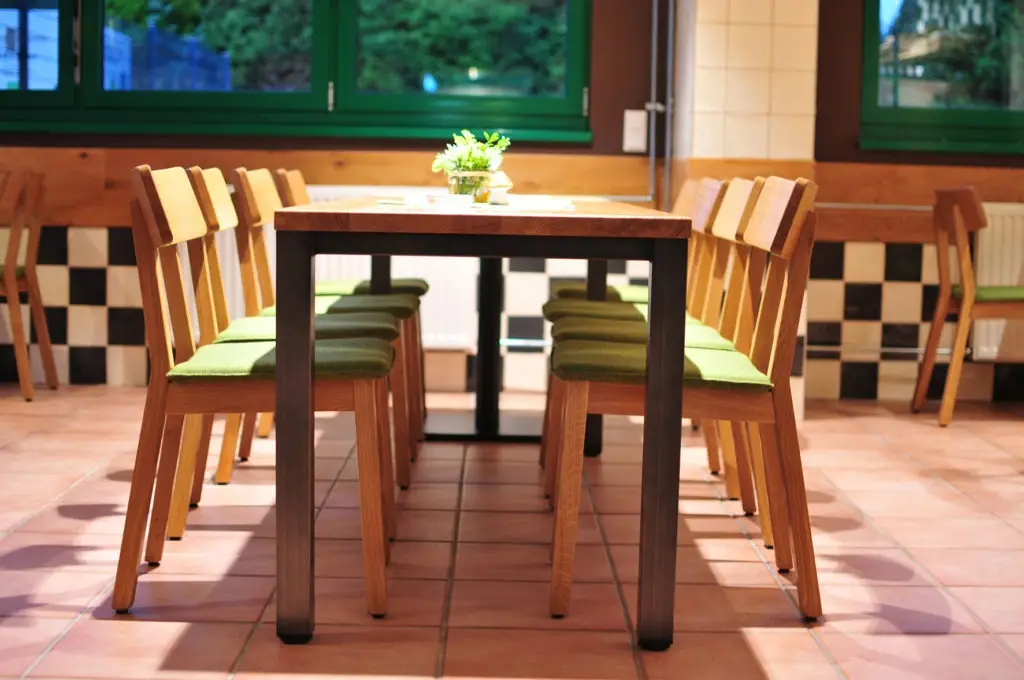 Durch die sorgsam abgerundeten Kanten fühlt sich jede Ecke und jede Kante angenehm unter den Fingerspitzen an. Das qualitativ hochwertige Massivholz aus Buche oder Eiche ist ebenso robust wie ansehnlich und schafft eine warme, helle und ansprechende Atmosphäre. Die hellen Töne dieser Hölzer lassen sich optisch durch viele Farbtöne ideal ergänzen und umspielen – mit den passenden Hockern im Design von Stuhl Carlos kann das Mobiliar auch ideal und optisch passend ergänzt werden.