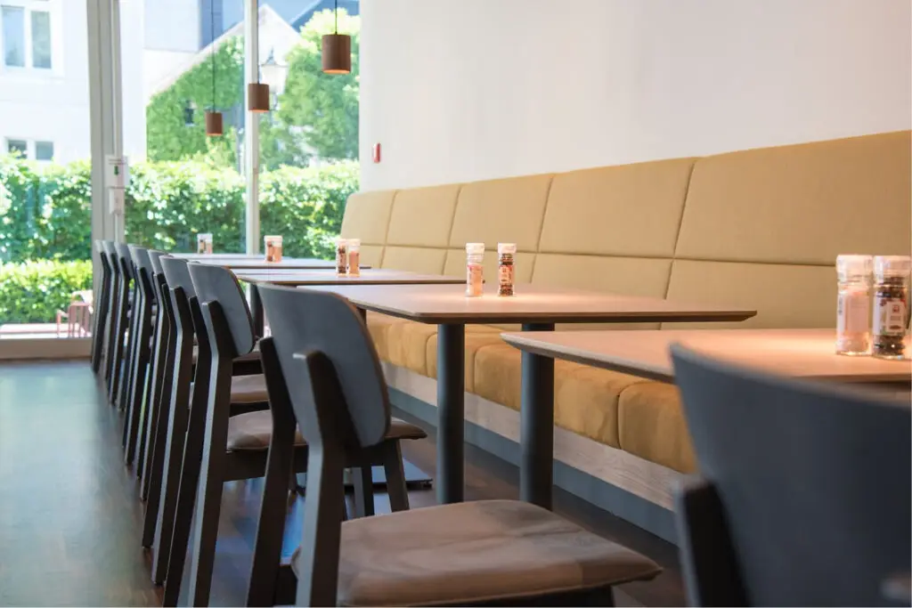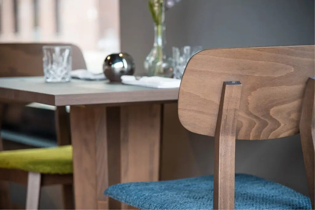 Die Verwendung von hochwertigem Massivholz in Buche oder Eiche sorgt für Stabilität und Langlebigkeit. Jedes Detail wurde mit Sorgfalt und Leidenschaft verarbeitet, um den hohen Ansprüchen der Gastronomie gerecht zu werden.