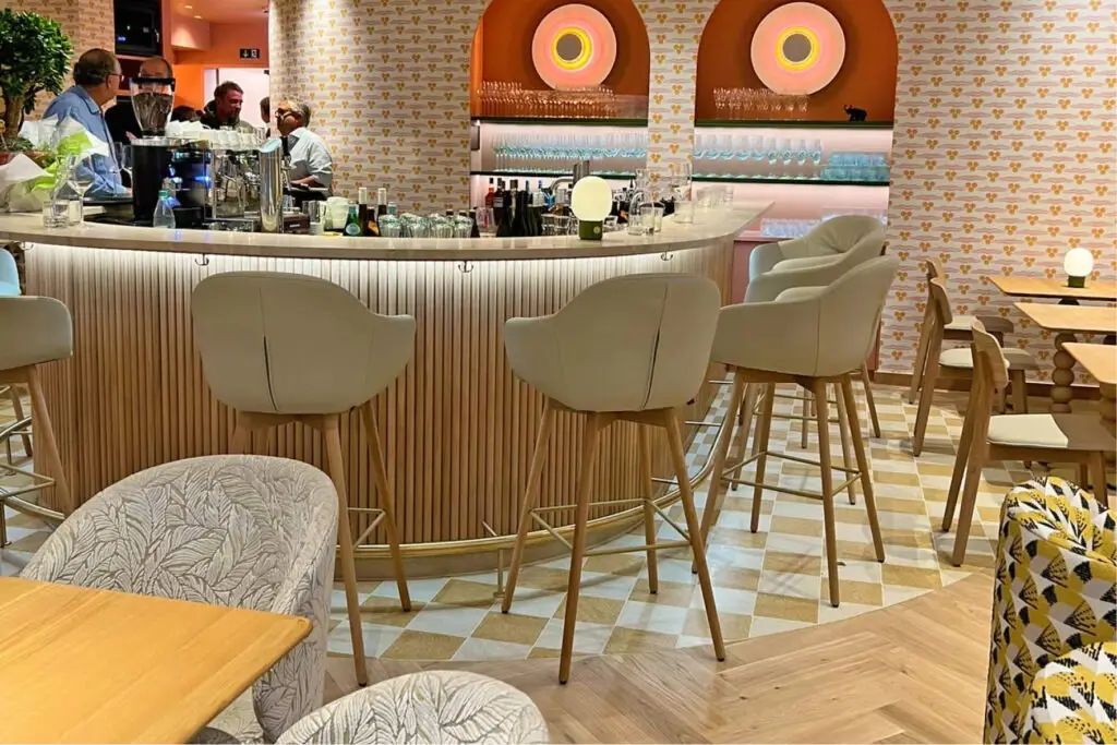 Zum stilvollen Gastronomiestuhl Torge passen perfekt die eleganten Thekenstühle, in unserem Sortiment unter der Artikelnummer 10247-A.