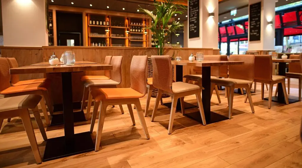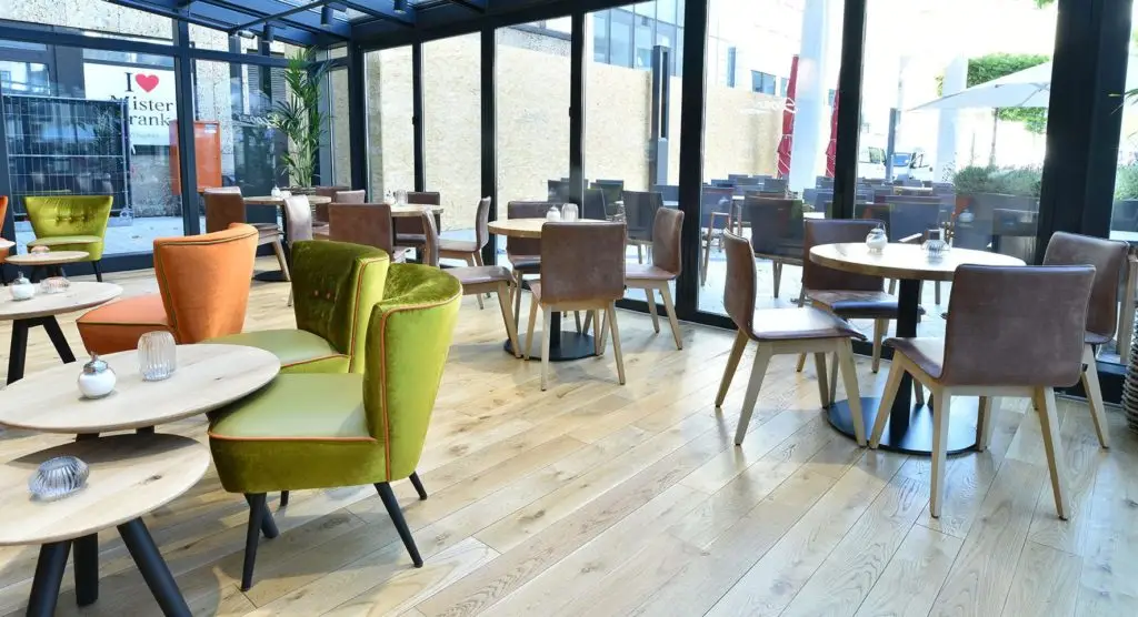 Das Rückenteil und der Sitz verfügen über sanfte Kurven, die sowohl dem Auge schmeicheln als auch die Bequemlichkeit erhöhen. Die ergonomische Rückenlehne schwingt leicht mit und passt sich so perfekt den Bewegungen an. So entstehen auch nach längerem Sitzen keine Beschwerden wie Rückenschmerzen. Die Sitzschale besitzt eine Vollpolsterung aus Polyetherschaum, ummantelt mit Polstervlies und bezogen mit dem Bezugsmaterial. Das Untergestell aus Massivholz ist bei dem Modell Train entweder aus Buche oder aus Eiche gefertigt. So passt sich der Stuhl perfekt dem jeweiligen Ambiente an. Besonders für den Einsatz im Hotel und Restaurant eignet sich der Stuhl Train hervorragend – auch in Kombination mit dem Hocker 10779 von Schnieder.