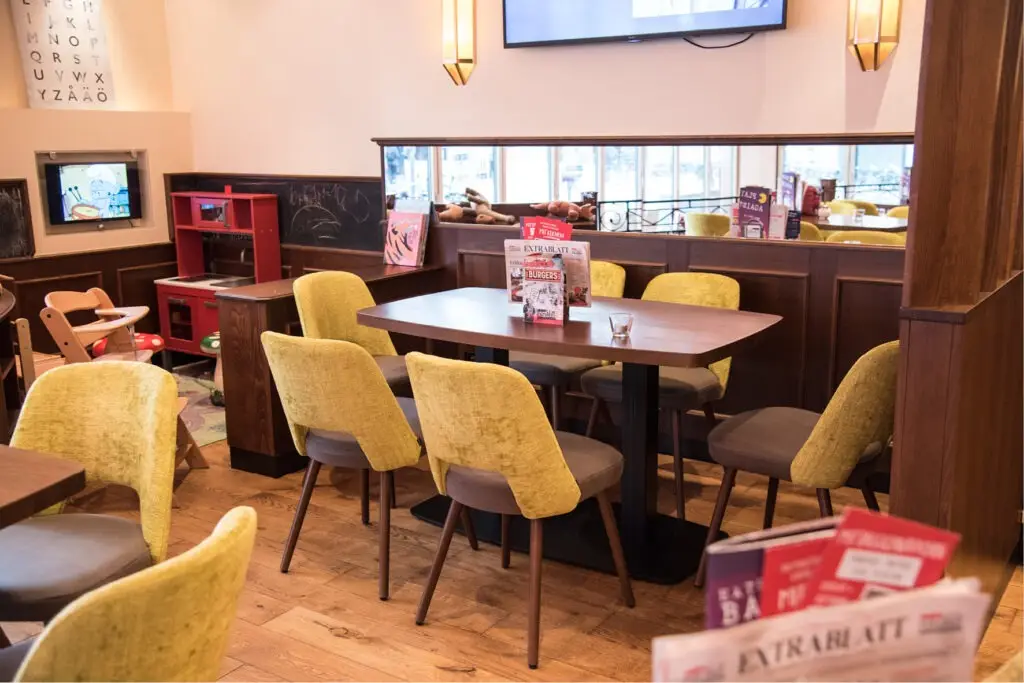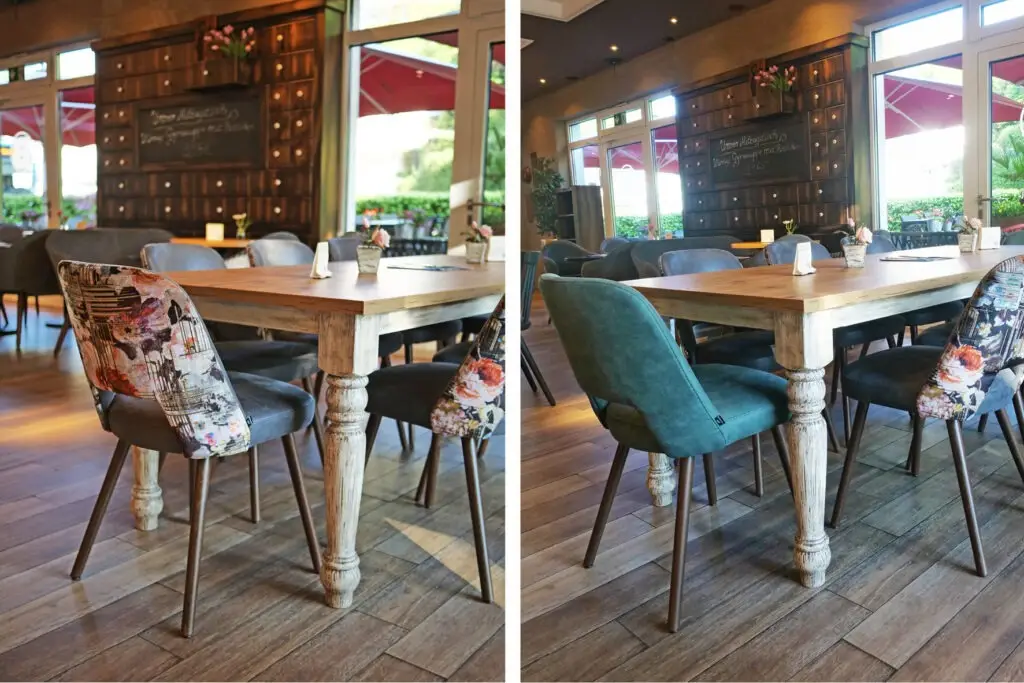 Zusammenfassend bietet der Polsterstuhl Kira eine elegante, komfortable und praktische Lösung für die Sitzgelegenheiten in Restaurants, Cafés oder anderen Gastronomiebetrieben. Mit seinem Massivholzuntergestell, dem gepolsterten Sitz, der filigranen Silhouette und dem Griffloch im Rücken ist der Polsterstuhl Kira nicht nur funktional, sondern auch ein ästhetischer Hingucker. Der Stuhl Kira wir Ihren Gästen ein angenehmes Sitzerlebnis bietet. Die nachhaltige Qualität aus der Stuhlfabrik Schnieder ist ein weiteres Merkmal, das den Polsterstuhl Kira zu einer erstklassigen Wahl für die Gastronomieeinrichtung macht.