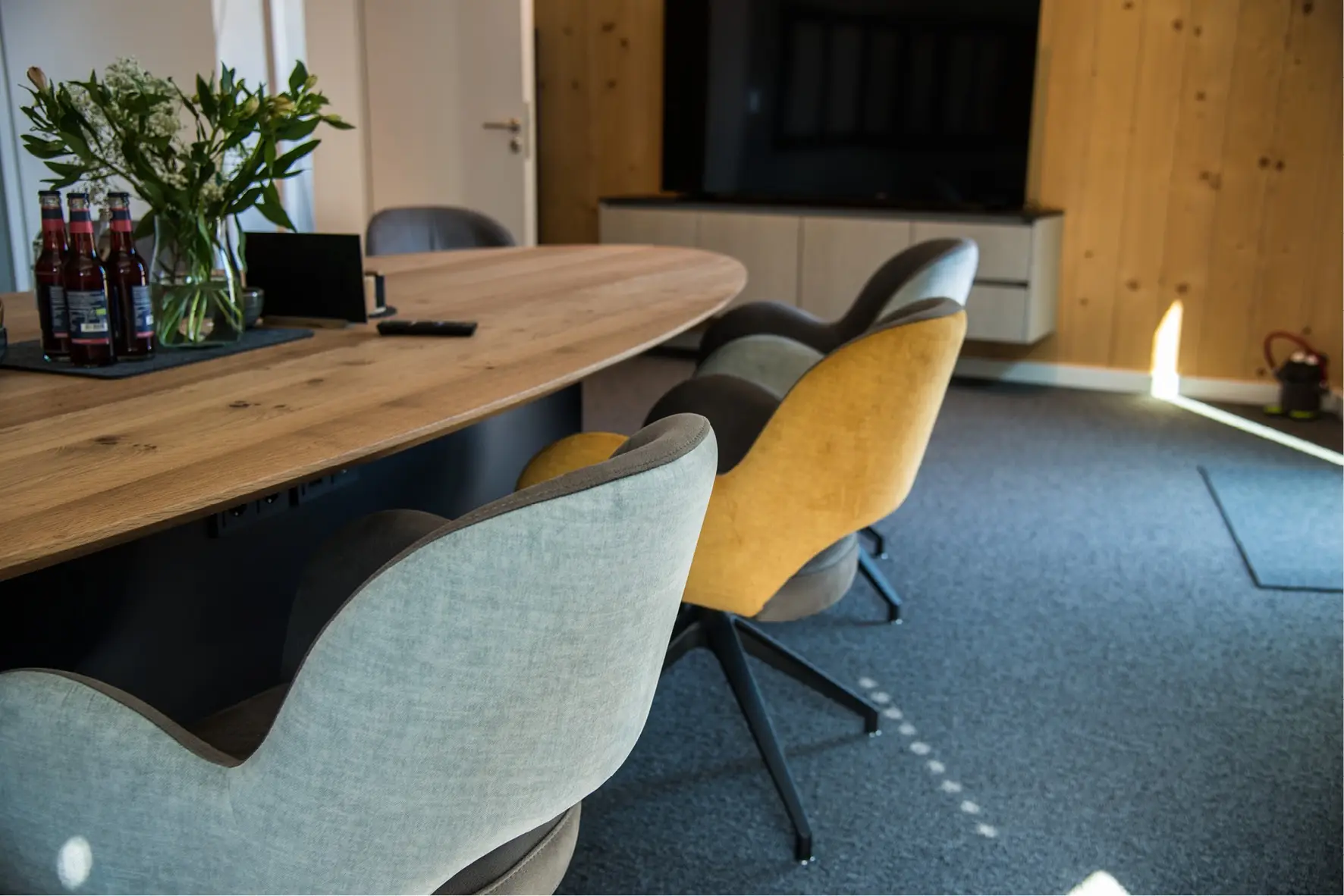 Das Vierfuß-Untergestell unterstützt die Optik des Drehsessel perfekt. Im Zusammenspiel mit dem Sitzteil entsteht ein harmonischer Gesamteindruck. Der Sessel Juna ist dank der Drehbarkeit ideal für alle, die großen Wert auf flexibles Sitzen und Bewegungsfreiheit legen. Ob am Schreibtisch oder als Sessel am Besuchertisch beziehungsweise im Konferenzraum, hier zeigt sich die Vielseitigkeit des modernen Sessels. Selbstverständlich können Sie den Sessel auch am Esstisch einsetzen.