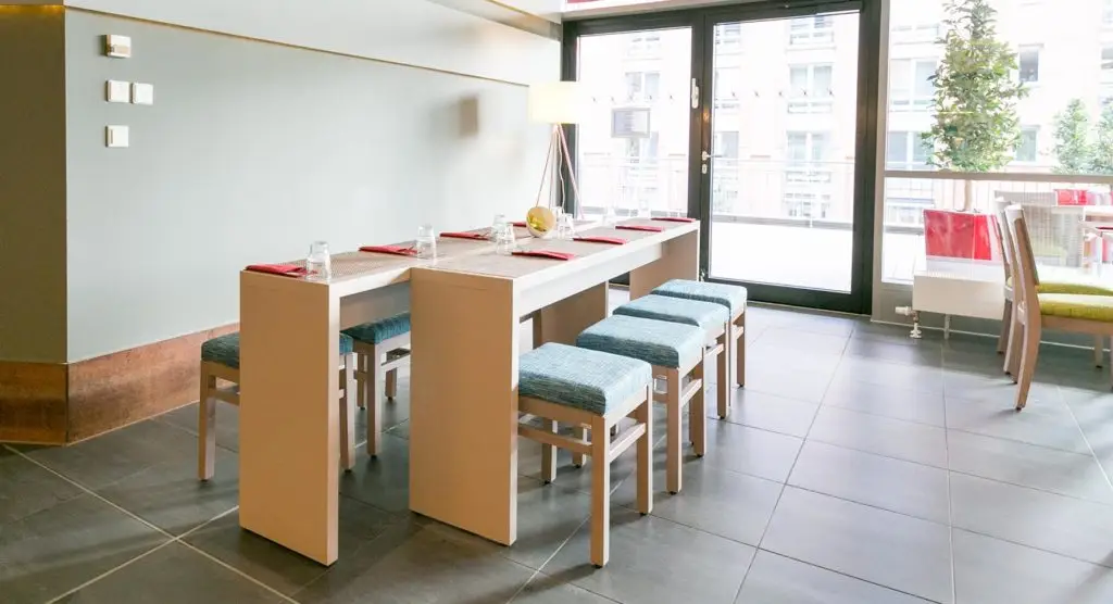 Bei der HLP (Hochdruckschichtstoffplatten) Variante ist der Wangentisch mit einer robusten HLP-Oberfläche ausgestattet. Die Seitenwangen, der Quersteg und die Tischplatte werden umlaufend mit ABS (Acrylnitril-Butadien-Styrol-Copolymer) Kanten versehen. Diese Kombination macht den Tisch besonders robust und auch für besondere Beanspruchungen, etwa in Bistros, geeignet.