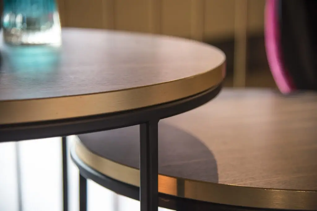 Der Lounge-Tisch Finja wirkt durch das äußere Metallgestell besonders leicht und filigran, opfert hierfür jedoch nichts von seiner Stabilität.