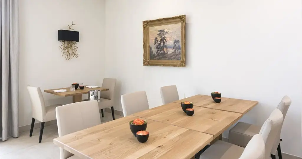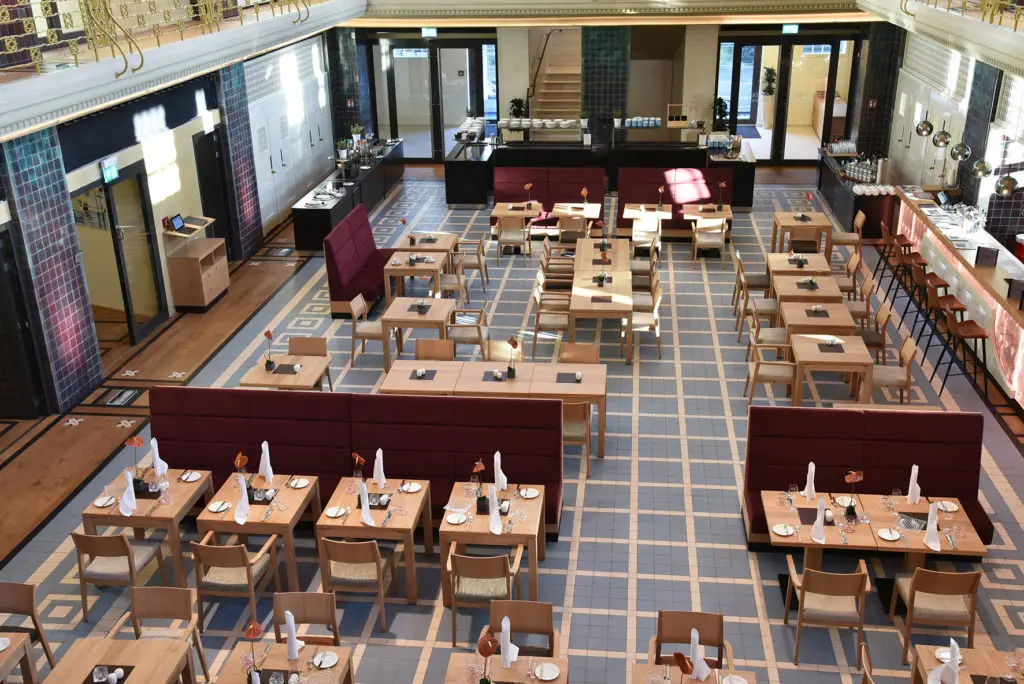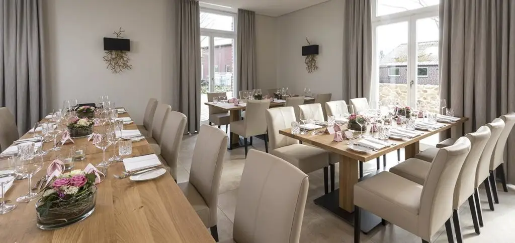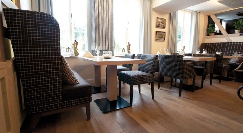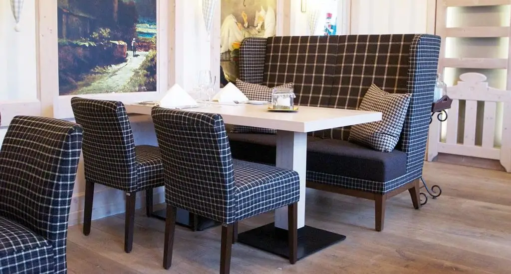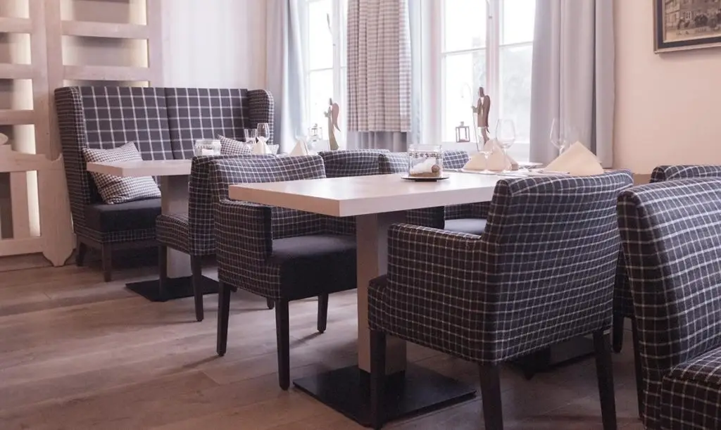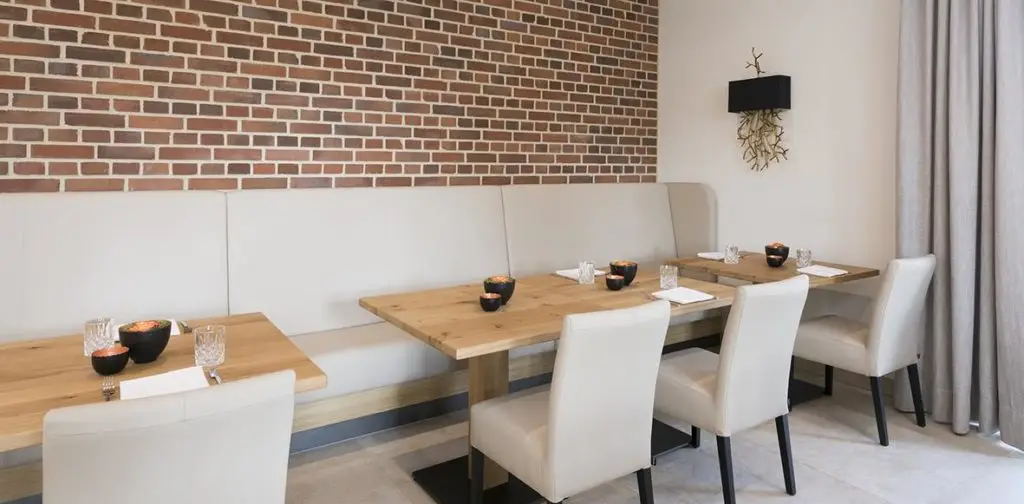 Der Säulentisch Siggi 30354 mit der massiven Holzsäule bietet Ihren Gästen im Restaurant oder Hotellerie reichlich Beinfreiheit. Als Polstersessel mit Armlehnen lassen sich bequem unter den Säulentisch 30354 schieben.