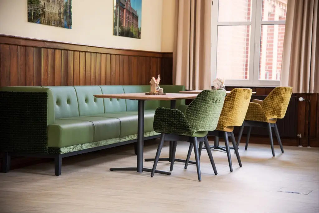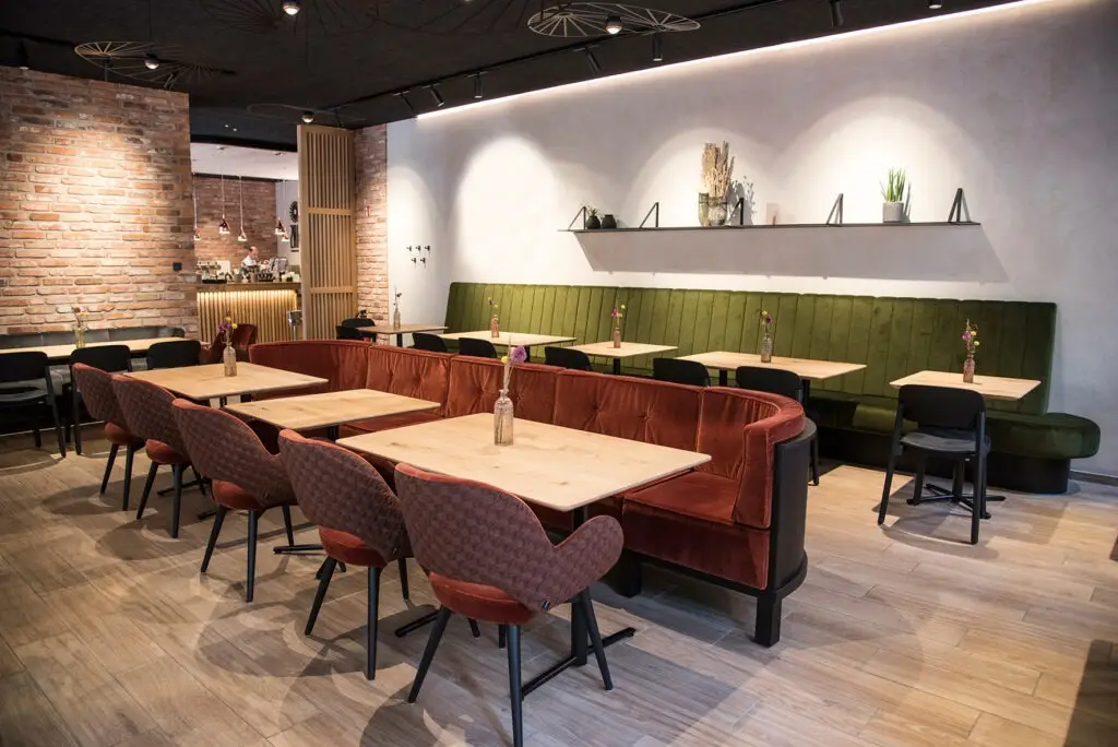 Seit 1918 widmen wir uns der Herstellung von Gastronomiemöbeln. Dabei lieben wir die Arbeit mit Holz, das wir mit edlen Polsterungen und schönen Stoffen verbinden. Ob Sessel, Stühle oder Tische – jedes Stück, das unsere Hallen verlässt, ist mit Herzblut versiegelt. Vollendete Perfektion auf höchstem Niveau – das bieten unsere Designstücke für Ihre Gastronomie. Obwohl wir heute nicht mehr ausschließlich von Hand arbeiten, sondern zusätzlich moderne CNC-Maschinen verwenden, achten wir auf präzise Verarbeitung und schöpfen aus der Erfahrung von hundert Jahren Schnieder.