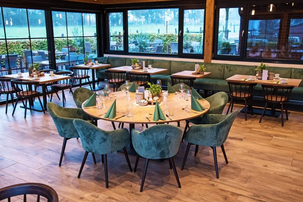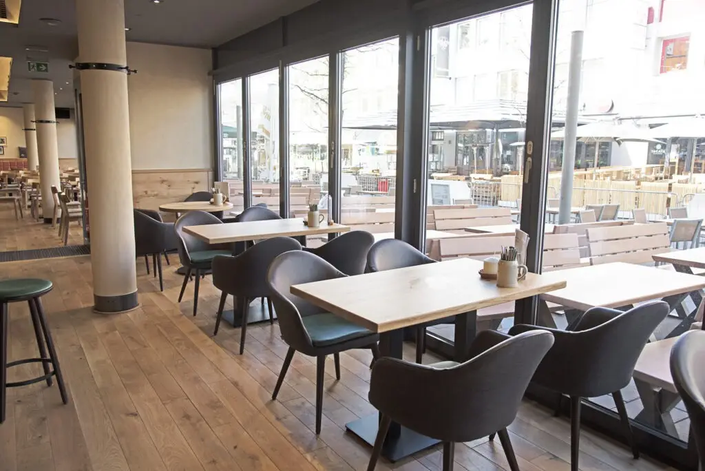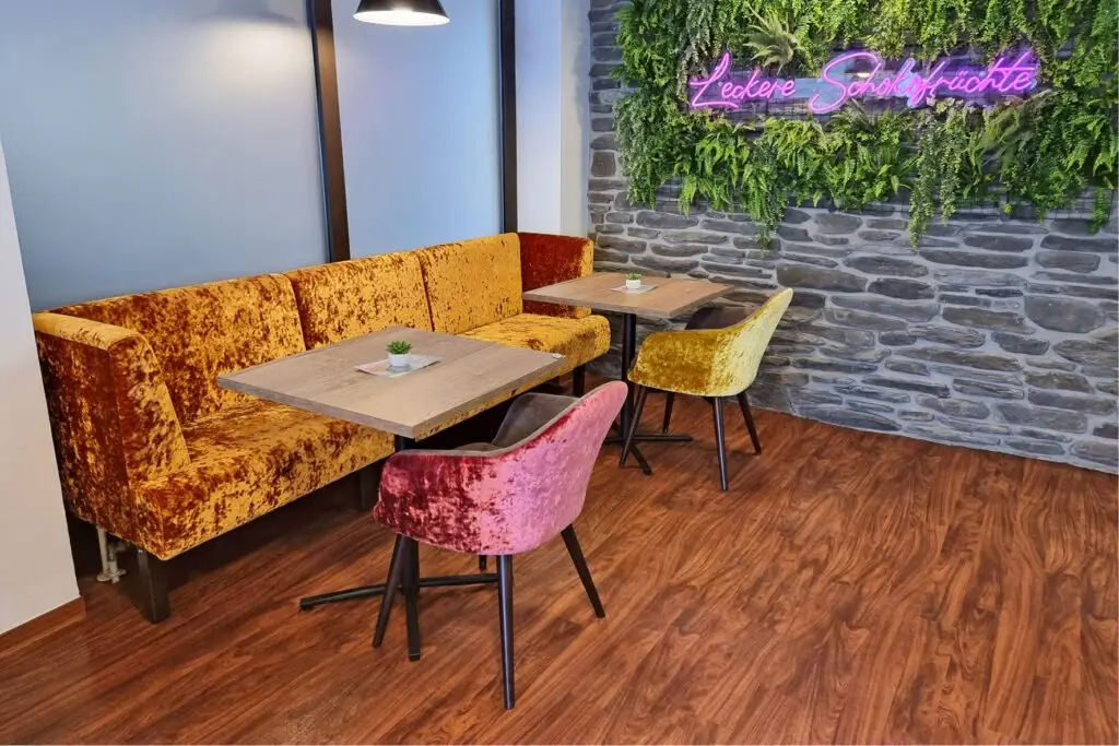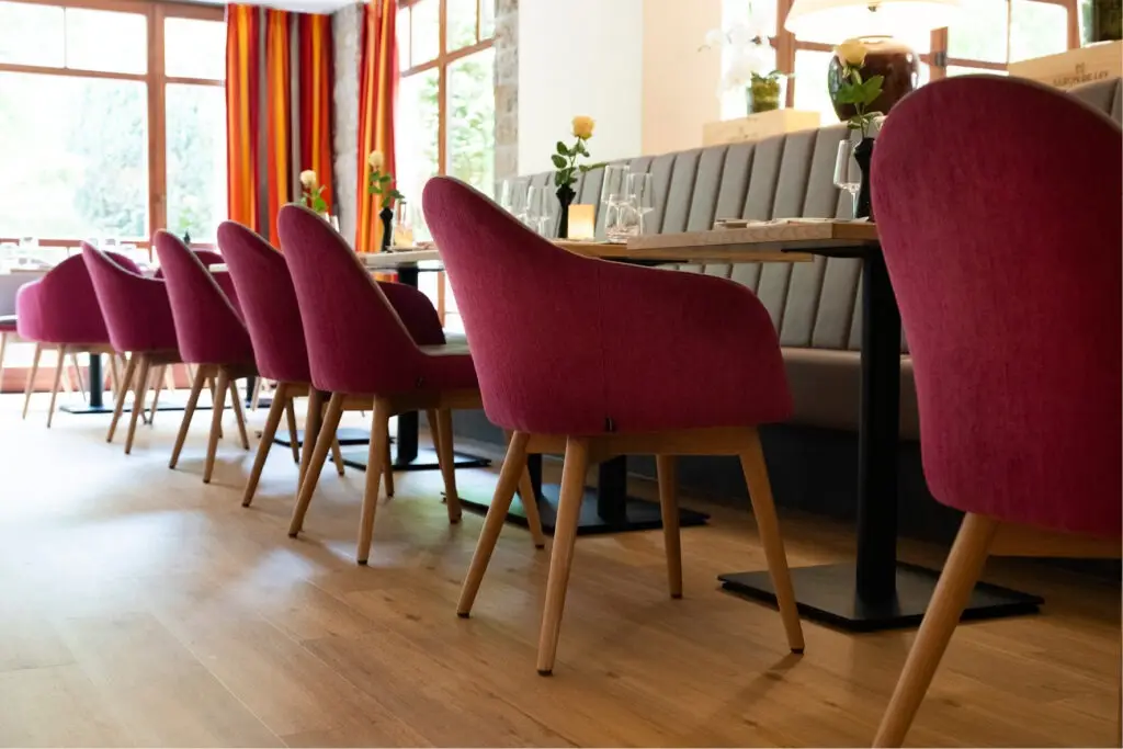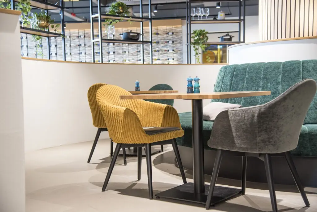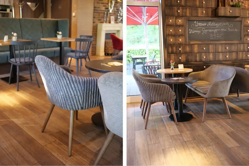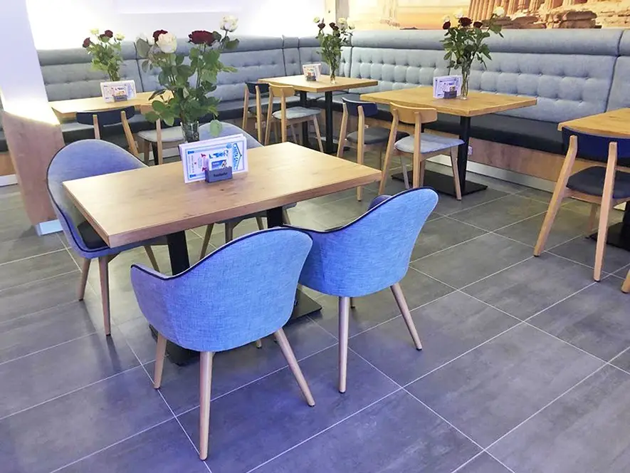 Der Gastronomie Sessel Tina ist vielseitig einsetzbar und passt perfekt in verschiedene gastronomische Einrichtungen wie Restaurants, Cafés oder Bistros. Auch in Mitarbeiterrestaurants bietet er eine gemütliche Atmosphäre, die zu entspannten Pausen einlädt. Die verschiedenen Holz- und Polstervarianten machen den Sessel zu einem wahren Multitalent: Mit heller Eiche und Kunstlederbezug wirkt er modern und frisch, während die dunkle, gebeizte Eiche eine rustikale Eleganz ausstrahlt, ideal für Lobbys oder gehobene Bistros.