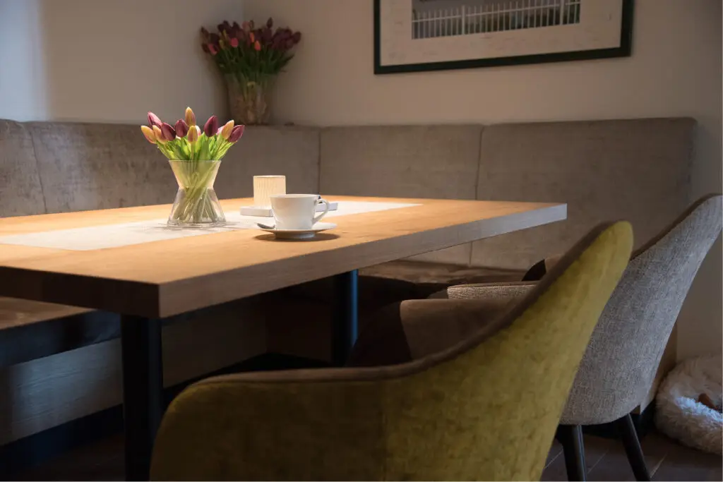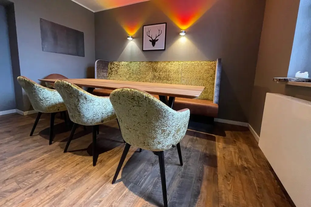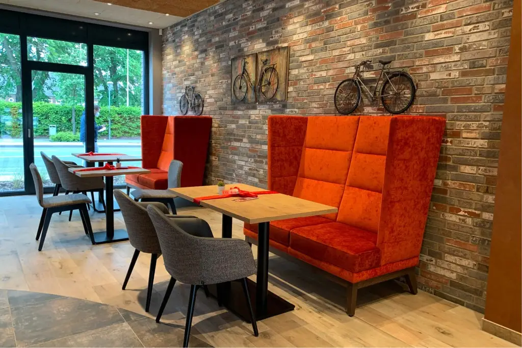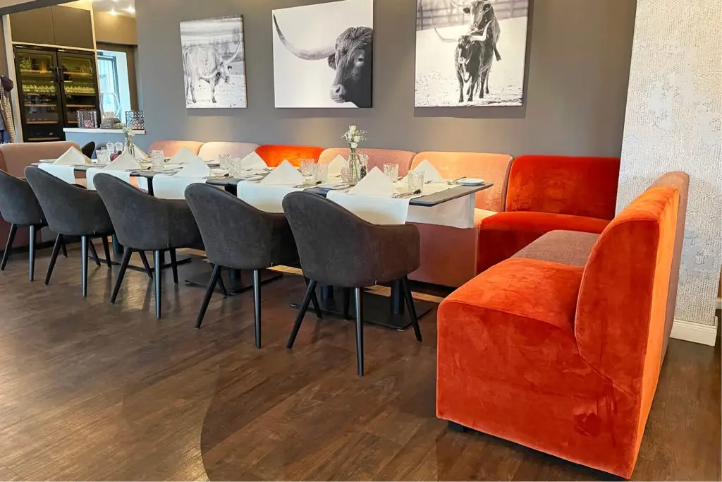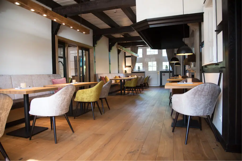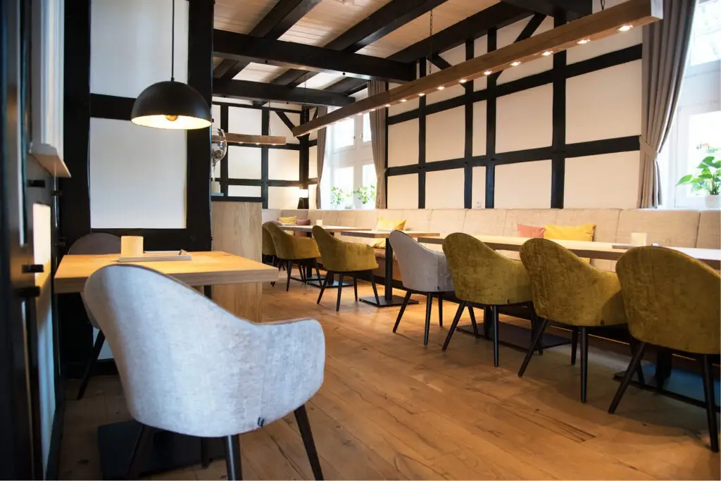 Der Gastronomie Sessel Tina ist vielseitig einsetzbar und passt perfekt in verschiedene gastronomische Einrichtungen wie Restaurants, Cafés oder Bistros. Auch in Mitarbeiterrestaurants bietet er eine gemütliche Atmosphäre, die zu entspannten Pausen einlädt. Die verschiedenen Holz- und Polstervarianten machen den Sessel zu einem wahren Multitalent: Mit heller Eiche und Kunstlederbezug wirkt er modern und frisch, während die dunkle, gebeizte Eiche eine rustikale Eleganz ausstrahlt, ideal für Lobbys oder gehobene Bistros.