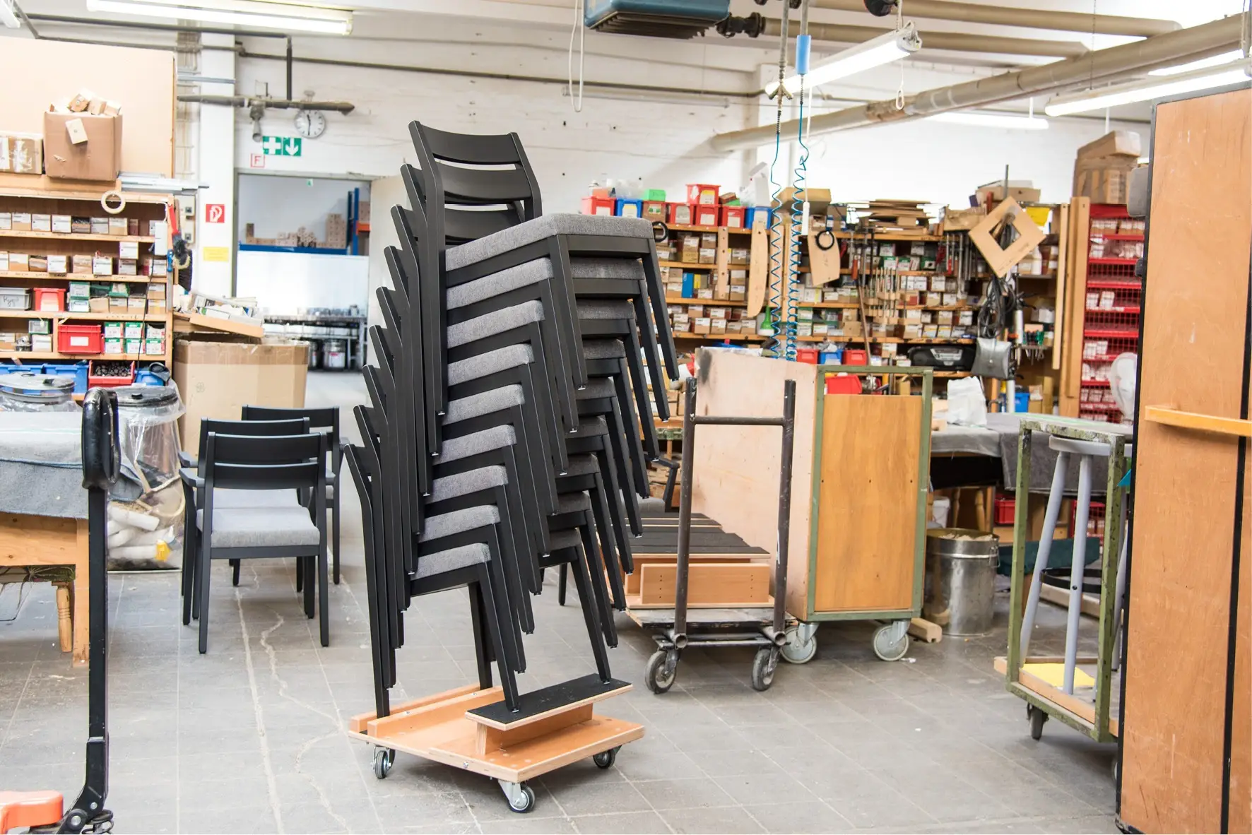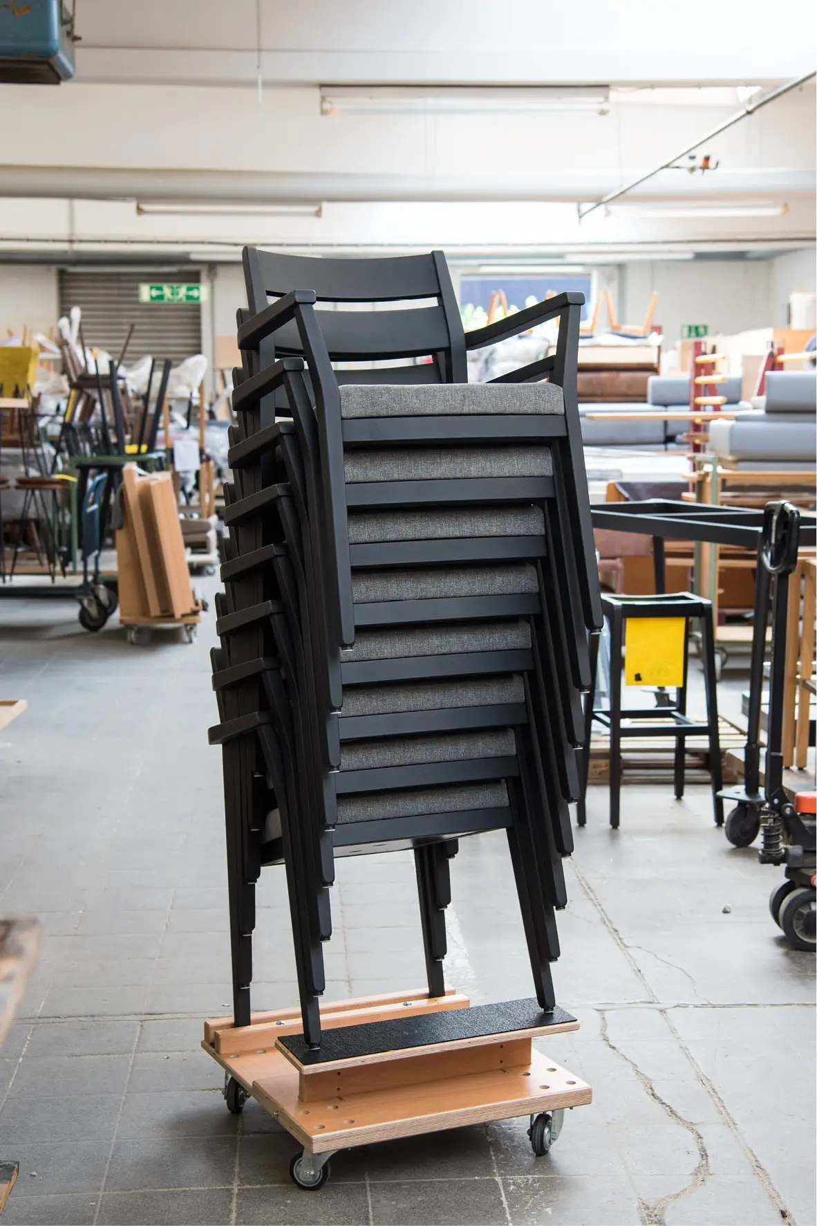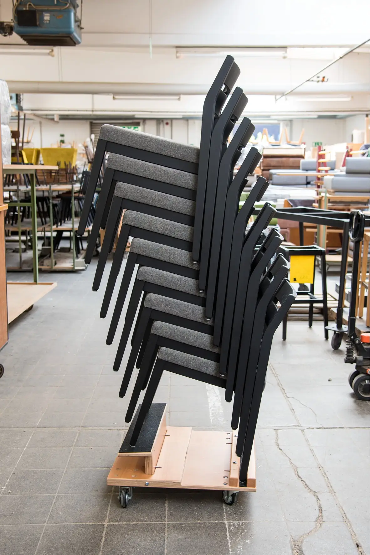Transport- und Lagerwagen für stapelbare Stühle und Armlehnstühle.