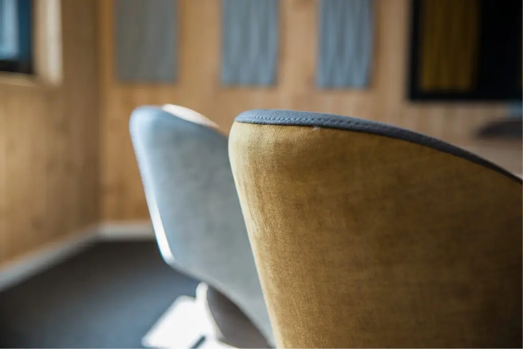 Im Erdgeschoss durften wir einen Besprechungsraum für bis zu zwölf Personen ausstatten. Hier kommen zwölf unserer Sessel Juna zum Einsatz, die mit ihren Polsterfarben in Blau, Hellgrün und Curry nicht nur eine lebendige, sondern auch eine konzentrierte Arbeitsatmosphäre schaffen. Der Besprechungsraum im ersten Obergeschoss bietet Platz für zehn Personen und ist mit zehn Sesseln Juna ausgestattet, die in den warmen und inspirierenden Farbtönen Curry, Flieder und Lila gehalten sind. Beide Räume zeichnen sich nicht nur durch die farblich abgestimmten Sitzmöbel aus, die sich harmonisch um einen beeindruckenden Tisch mit einer Massivholzplatte und Schweizer Kante gruppieren. Besonders hervorzuheben ist das durchdachte Beleuchtungskonzept, das eine optimale Ausleuchtung gewährleistet. Zudem tragen Akustikplatten an den Wänden maßgeblich zu einer exzellenten Gesprächsakustik bei, sodass Diskussionen ungestört und produktiv verlaufen können. Dieses Projekt trägt dazu bei, ein Arbeitsumfeld zu schaffen, das Kreativität, Zusammenarbeit und effiziente Kommunikation bei Westfalia Spielgeräte unterstützt. Wir sind stolz darauf, mit unseren Sitzmöbeln zu dieser angenehmen und produktiven Atmosphäre beitragen zu können.