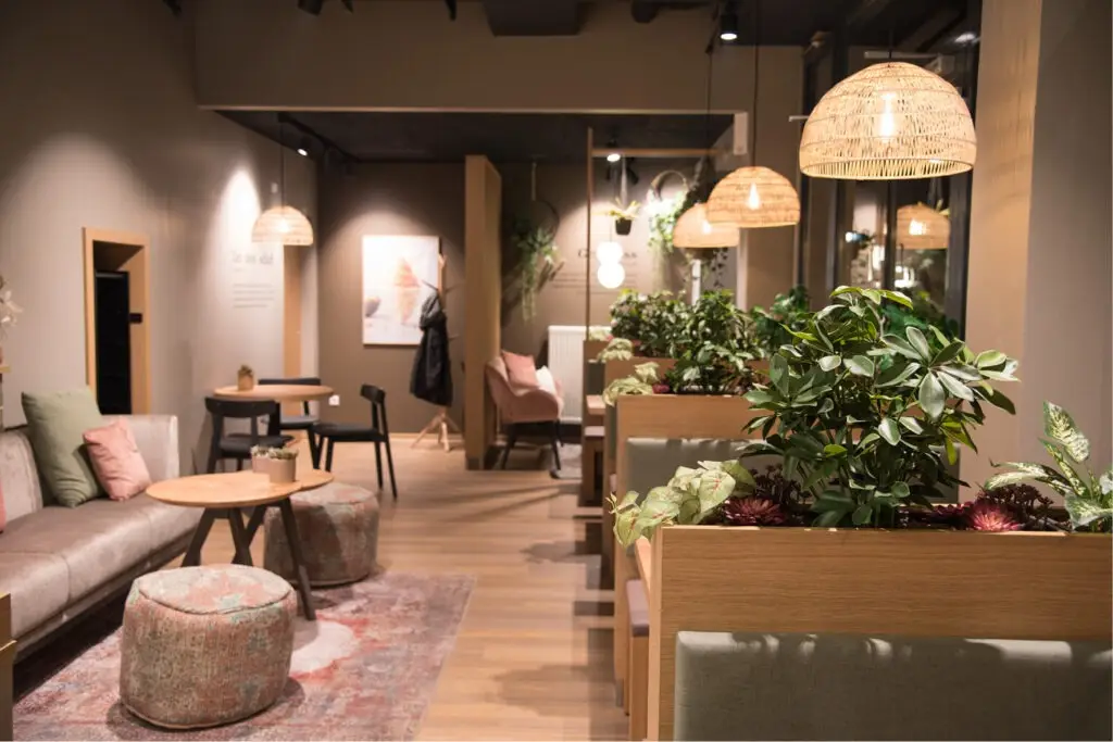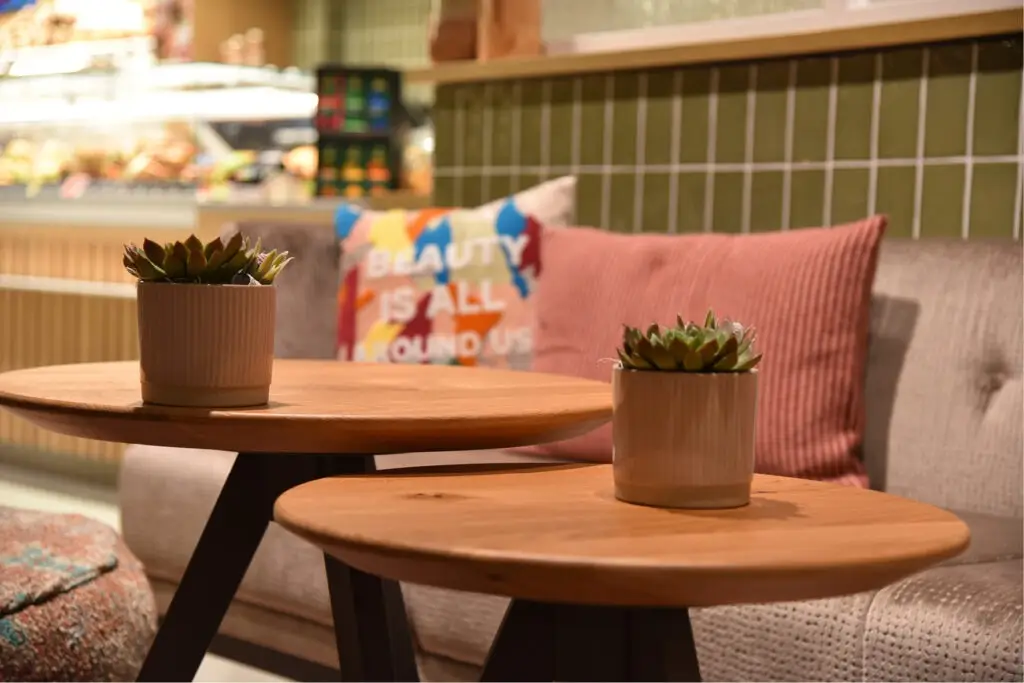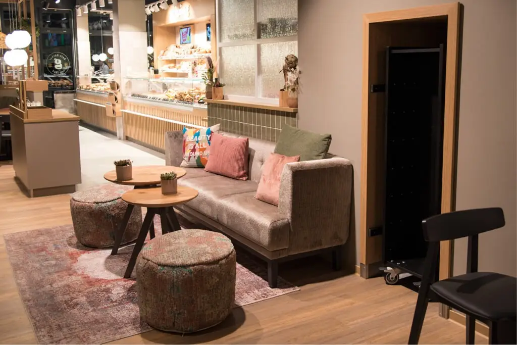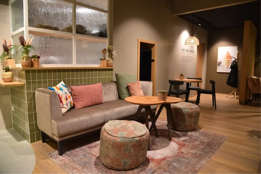 Ein Café sollte mehr sein als nur ein Ort zum Verweilen – es sollte ein Erlebnis bieten. In der neuen Geiping-Filiale entstand ein durchdachter Sitzbereich mit vielen privaten Nischen für die Gäste. Besonders gemütlich sind die Zweisitzer Juna, die gemeinsam mit den stilvollen Greta-Tischen harmonische Rückzugsorte schaffen.