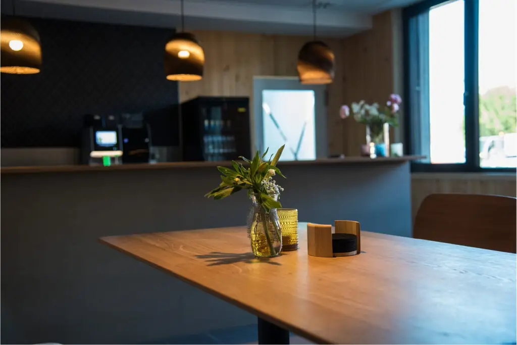 Der "Marktplatz" ist weit mehr als nur ein Pausenbereich; er ist ein Ort der Begegnung und des Austauschs, der Mitarbeitende aus allen Bereichen – von Produktion über Vertrieb bis hin zu Entwicklung und Disposition – unter einem Dach zusammenbringt. Die eigens aufeinander abgestimmten Pausenzeiten fördern bewusst ein starkes „Wir“-Gefühl und ermöglichen ungezwungene Kommunikation. Hier entsteht ein lebendiger Treffpunkt, an dem Ideen ausgetauscht und das Gemeinschaftsgefühl gestärkt wird.