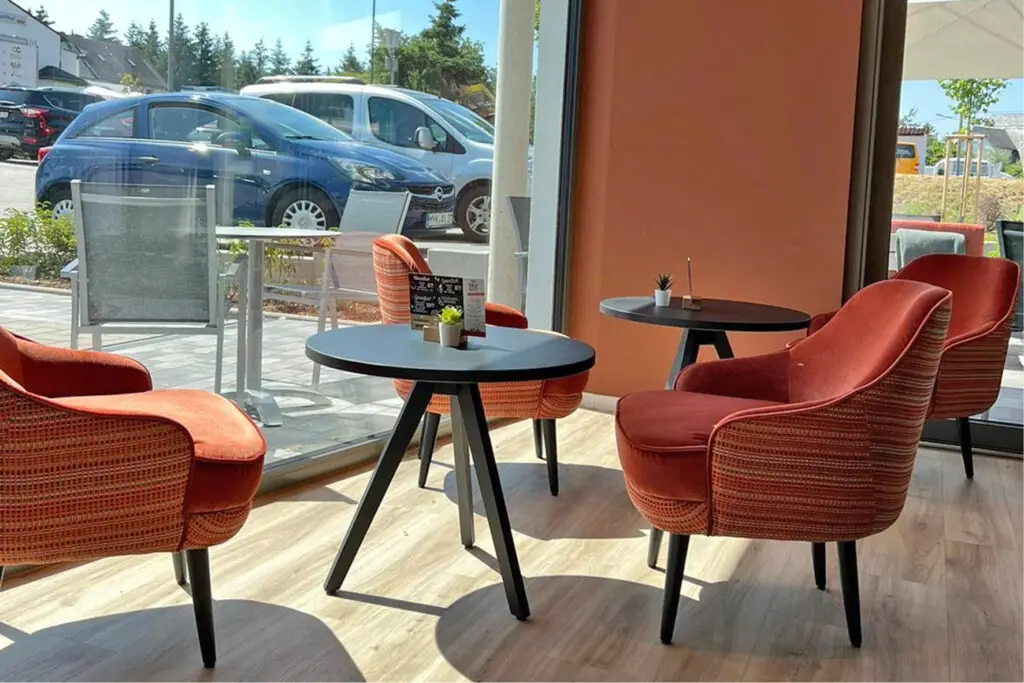 Die Einrichtung einer Bäckerei Café Filiale ist von großer Bedeutung, um den vielfältigen Bedürfnissen der Gäste gerecht zu werden. Als Hersteller von Gastronomiemöbeln verstehen wir die Wichtigkeit eines ansprechenden und funktionalen Interieurs. Unsere Möbel ermöglichen eine breite Vielfalt an Sitzmöglichkeiten, um die unterschiedlichsten Gäste zufriedenzustellen. Gemütliche Sessel, Holzstühle und Polsterbänke laden zum Verweilen ein, während Barhocker am Stehtisch für einen schnellen Kaffeegenuss sorgen. Gemütliche Sofas und Sessel bieten Platz für Gruppen und Familien. Flexibel arrangierbare Tische ermöglichen es, den Raum je nach Bedarf anzupassen. Die Farbwahl und Materialien sind ebenfalls entscheidend. Warme Farben schaffen eine einladende Atmosphäre, während robuste und pflegeleichte Materialien Langlebigkeit garantieren. Eine gut durchdachte Einrichtung schafft ein Ambiente, in dem sich alle Gäste willkommen und wohl fühlen. Unser Ziel ist es, dazu beizutragen, dass die Bäckerei Café Filiale zu einem beliebten Treffpunkt für jeden wird.
