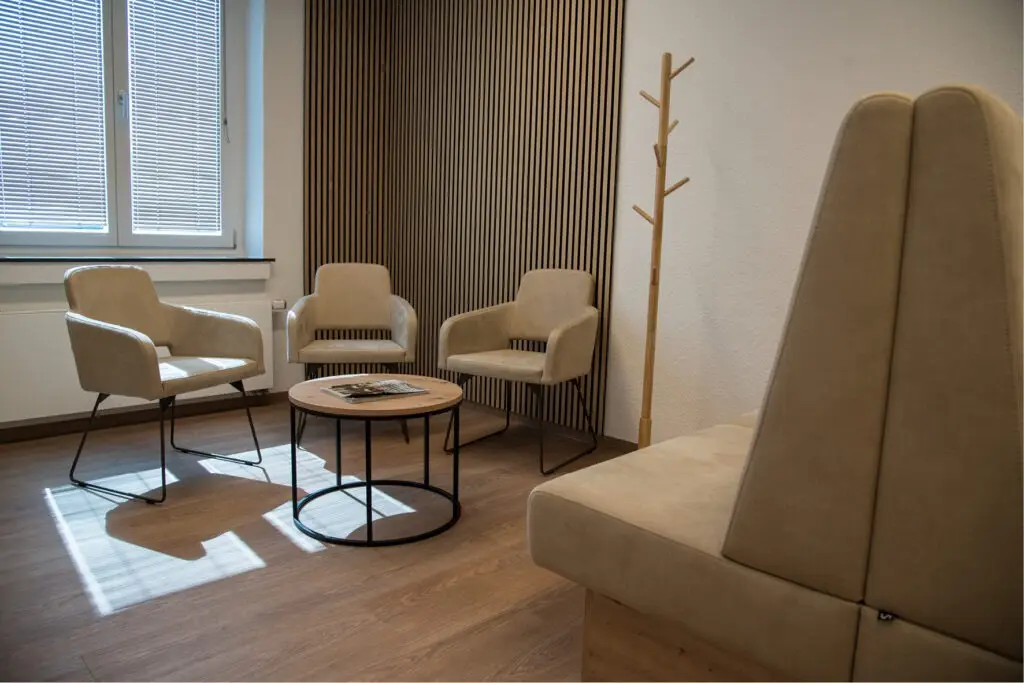 Privatsphäre und Struktur durch hohe Rückenlehnen im Wartezimmer